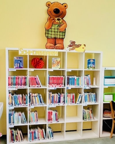 Apropos Schmökern: Wir haben das bisherige Konzept für die Bereiche Erstleser und Leichtes Lesen komplett überarbeitet, für die Kinder übersichtlicher gestaltet und sämtliche Bücherregale entsprechend neu beschriftet. Auf einem Thementisch werden wir nun immer Bücher präsentieren.