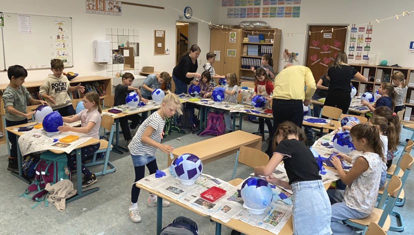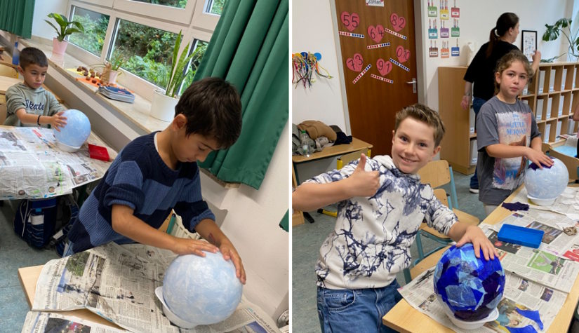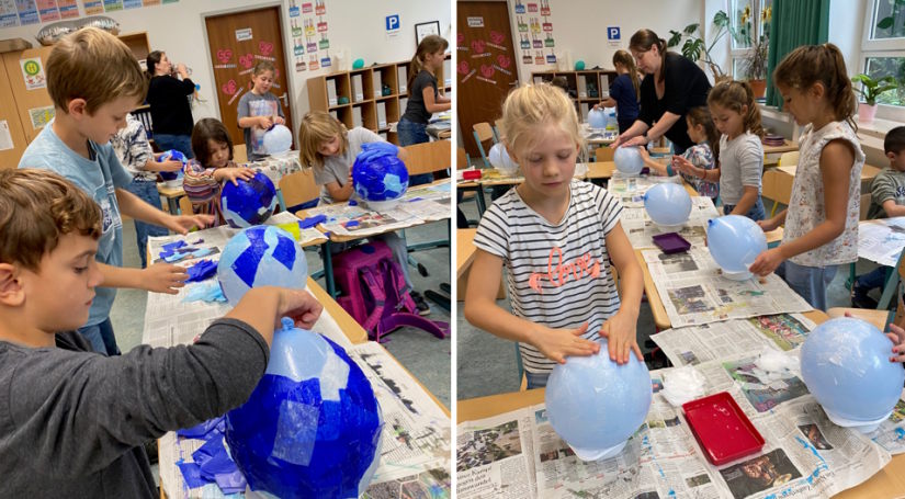 Mit der wunderbaren Unterstützung zahlreicher Eltern wurde zunächst mit viel Freude gekleistert. Vielen Dank noch einmal für Ihre Hilfe!