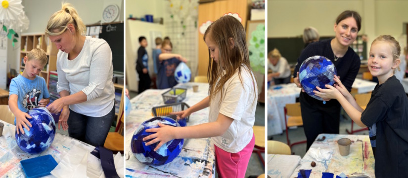 Ich bin mit Herrn Ahmeti und mit den anderen Kindern Roller gefahren. Und wir haben einen Roller-Parcours gemacht. Wir sind auf die Wiese gegangen und haben da die Roller geholt. Wir waren dann noch 10 Minuten draußen. (von Luis)